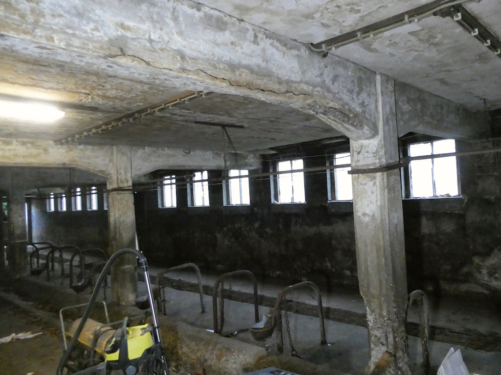 Opmerkelijk aan de boerderij is de achterliggende stal die uit een betonconstructie bestaat met een houten verdiepingsvloer die aan de onderzijde is gepleisterd.